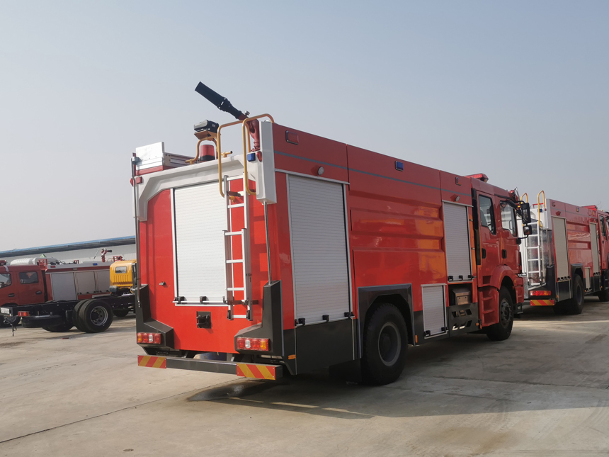 豪沃8噸水罐消防車采用重汽豪沃ZZ5207TXFV471GF5底盤改裝而成。整車由消防員乘員室和車身兩大部分組成,乘員室為原裝雙排,可乘坐2+4人,該車為外露罐結構,車身前部為器材箱,中部為罐體,后部為泵房。載液罐體為優質碳鋼,內部噴涂環氧底漆及環氧瀝青漆,與底盤采用彈性連接,載水量7900kg,裝備了上海茸申消防設備有限公司生產CB10/60型消防泵,額定流量60L/S,車頂安裝成都威斯特消防機械有限公司生產的PS8/60W型車用消防炮。該車最大的特點是載液量大、操控性好、維修簡便。可廣泛應用于公安消防隊、廠礦企業及社區、碼頭等場所,撲救大型油類火災和一般物質火災。 | |||