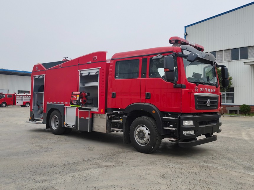 汕德卡7.2噸泡沫消防車采用中國(guó)重汽集團(tuán)濟(jì)南商用車ZZ5206N471GF5底盤改裝而成。整車由消防員乘員室和車身兩大部分組成,乘員室為原裝雙排,可乘坐2+4人,該車為外露罐結(jié)構(gòu),車身前部為器材箱,中部為罐體,后部為泵房。載液罐體為優(yōu)質(zhì)碳鋼,內(nèi)部噴涂環(huán)氧底漆及環(huán)氧瀝青漆,與底盤采用彈性連接,載水量4950kg,泡沫液量2200kg,裝備了上海雄真消防設(shè)備有限公司生產(chǎn)CB10/60-XZ型常壓消防泵,額定流量60L/S,車頂安裝成都威斯特消防機(jī)械有限公司生產(chǎn)的PL8/48型車用消防炮。該車最大的特點(diǎn)是載液量大、操控性好、維修簡(jiǎn)便。可廣泛應(yīng)用于公安消防隊(duì)、廠礦企業(yè)及社區(qū)、碼頭等場(chǎng)所,撲救大型油類火災(zāi)和一般物質(zhì)火災(zāi)。 | |||