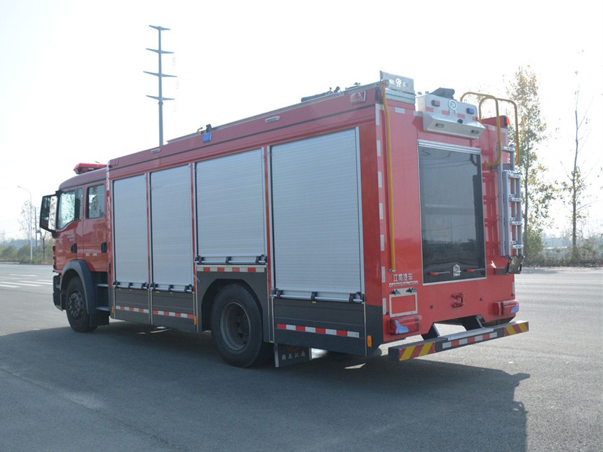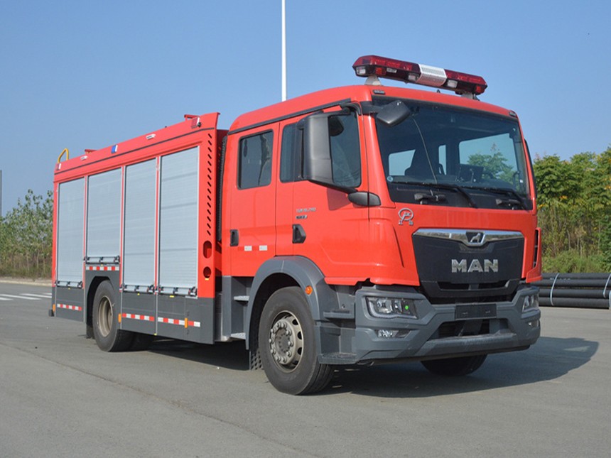 德國曼6.7噸泡沫消防車/JDF5170GXFPM70/M6型泡沫消防車采用德國曼恩TGM18.290 B原裝進口底盤改裝,乘員室為原廠雙排,可乘坐2+4人,該車為內藏罐結構,車身前部中間為水罐,兩側為器材箱,后部為泵房。載液罐體材質為304不銹鋼,與底盤采用彈性連接,泡沫罐容積2000L,水罐容積4700L。裝備了希爾公司生產的CB10/60-MBP型低壓車用消防水泵,額定流量常壓60L/S@1.0MPa,車頂安裝阿瓦格消防設備有限公司成產的PLKD8/48B-5177型電控車用消防炮。該車最大的特點是機動靈活、操控性好、維修簡便。可廣泛應用于應急救援消防隊、廠礦企業及社區、碼頭等場所,撲救大型油類火災和一般物質火災。