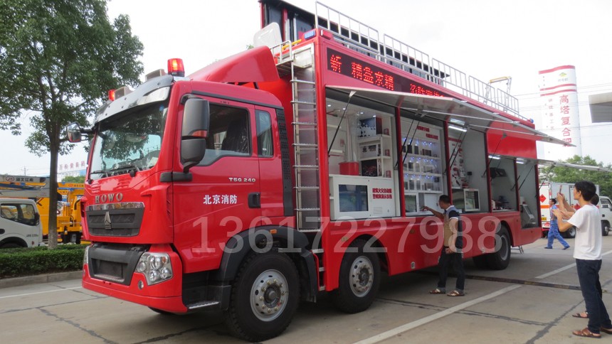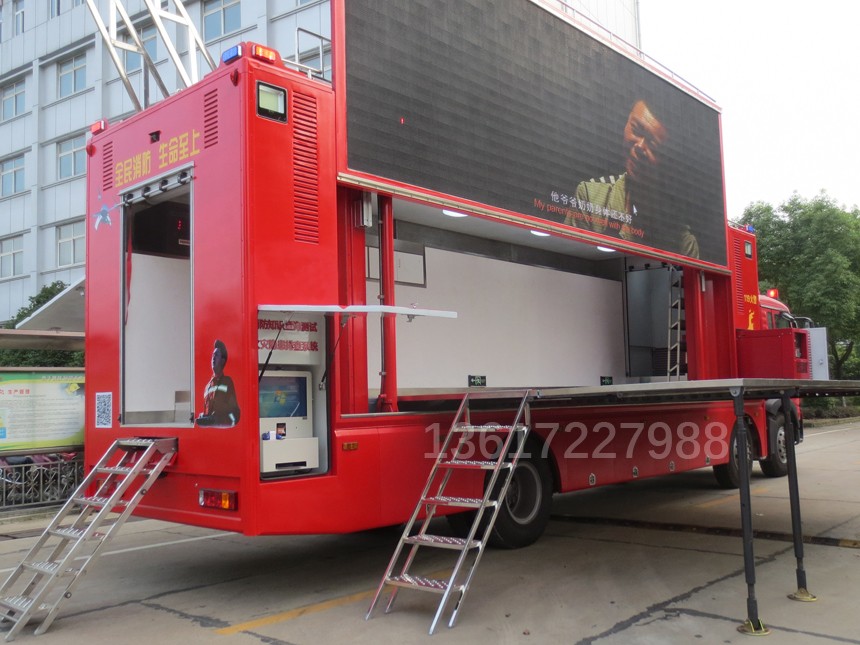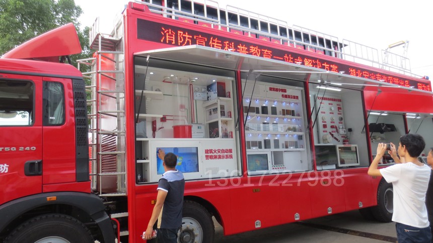 JDF5150TXFXC08型宣傳消防車采用汕德卡底盤(pán)為改裝平臺(tái),具備獨(dú)立進(jìn)行消防宣傳功能,宣傳車主要包含多媒體宣傳系統(tǒng)、消防知識(shí)查詢系統(tǒng)、廚房安全隱患排查系統(tǒng)、常見(jiàn)火災(zāi)虛擬演示系統(tǒng)、大屏模擬滅火演示系統(tǒng)、AR火災(zāi)態(tài)勢(shì)演練系統(tǒng)、VR火災(zāi)逃生訓(xùn)練系統(tǒng)。具備音、視頻宣傳教育和全方位互動(dòng)體驗(yàn)的特色,各宣傳教育互動(dòng)體驗(yàn)單元模塊,都是貼近國(guó)內(nèi)消防安全宣傳教育實(shí)際需要,引進(jìn)國(guó)內(nèi)外前沿技術(shù)定向研發(fā)而成。 | |||