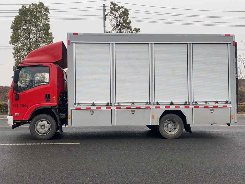 專用功能:1.5噸液壓尾板,器材箱內部型材可調節