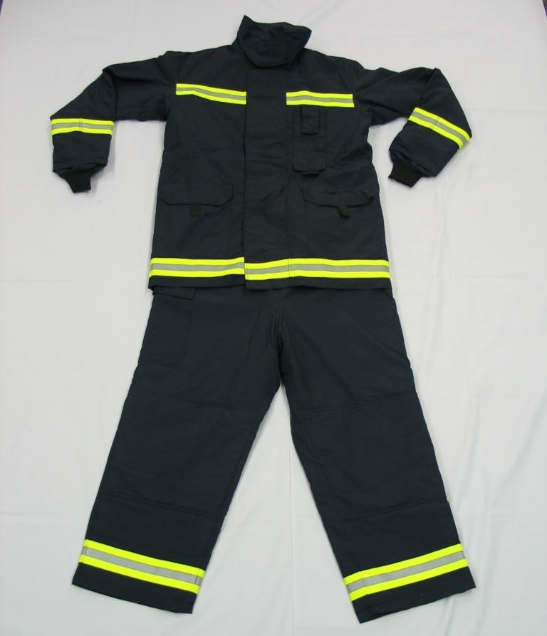 3)反光標識帶。上衣在胸部、下擺、袖口各設1條360度環形反光標識帶,褲子在小腿部各設1條360度環形反光標志帶。反光標志帶寬度為50.8mm(2英寸),為黃銀黃雙色阻燃反光帶,確保消防員的可見度和工作安全。